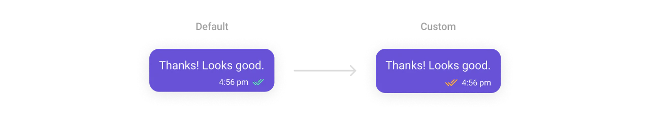 TheCometChatReceipts Component indicates message delivery and read statuses using intuitive icons. These can be styled for icon size, tint, and alignment, ensuring they remain clear and consistent with your app’s UI.
