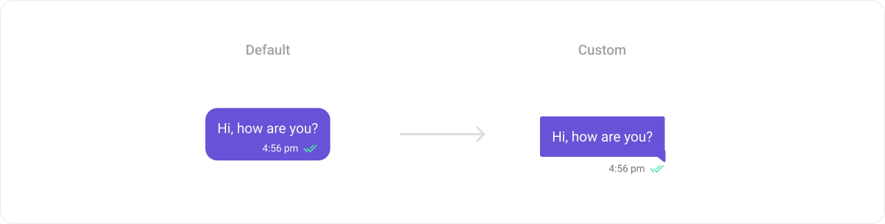 .setContentView()method allows you to assign a custom content view to the MessageBubble. By default, it displays the Text Bubble, Image Bubble, File Bubble, Audio Bubble, or Video Bubble, depending on the message type.