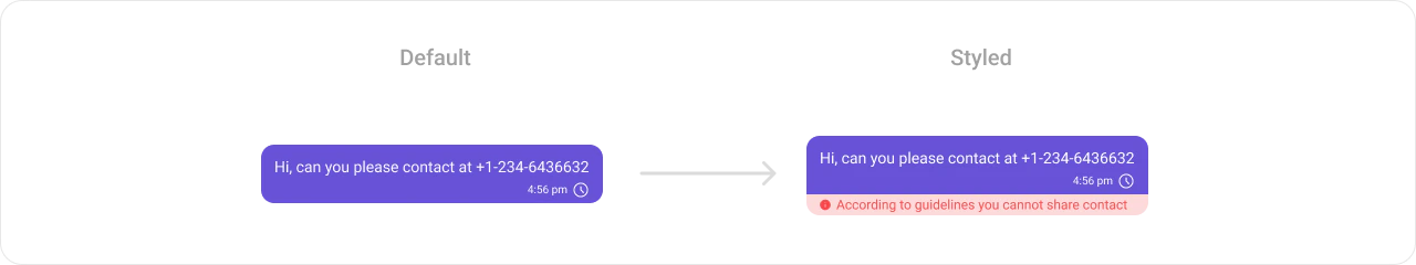 MessageTemplate provides you with methods that allow you to alter various properties of the MessageBubble. These properties include aspects such as thetype and category of a message, the appearance and behavior of the header, content, and footer sections of the message bubble,