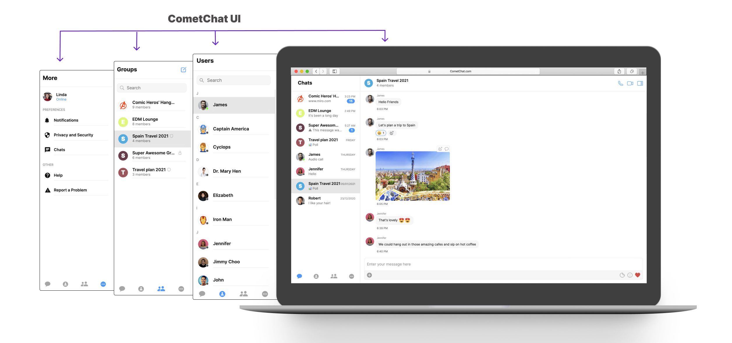 CometChatUI is an option to launch a fully functional chat application using the UI Kit. In CometChatUI all the UI Components are interlinked and work together to launch a fully functional chat on your website/application