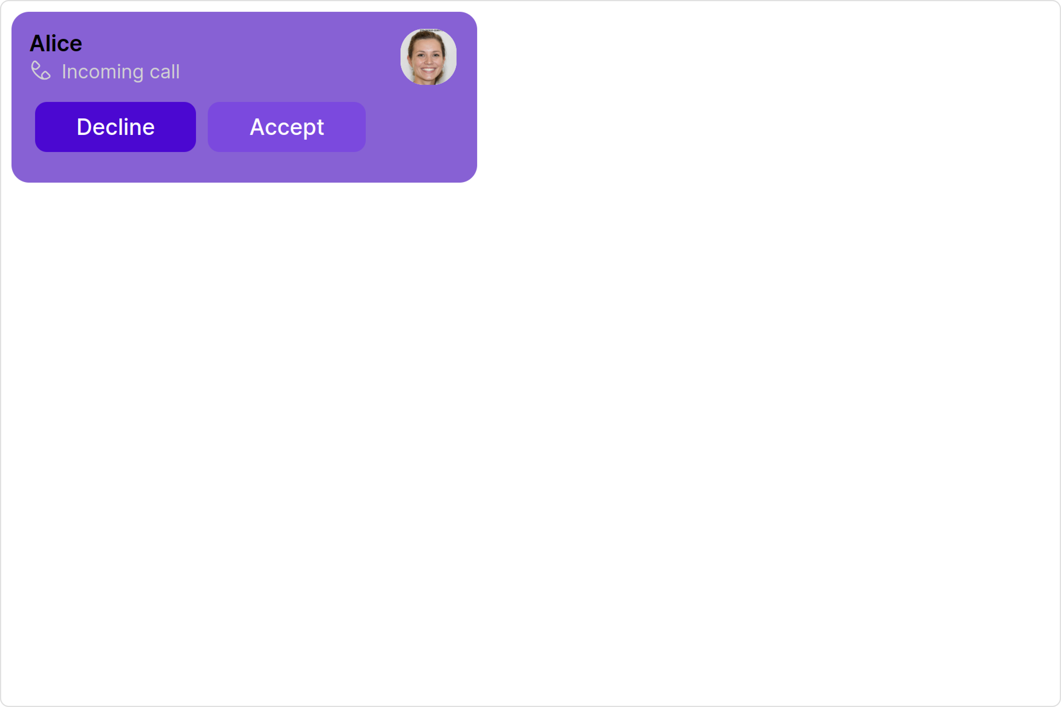 These are a set of small functional customizations that allow you to fine-tune the overall experience of the component. With these, you can change text, set custom icons, and toggle the visibility of UI elements. Here is a code snippet demonstrating how you can customize the functionality of the Incoming Call component.