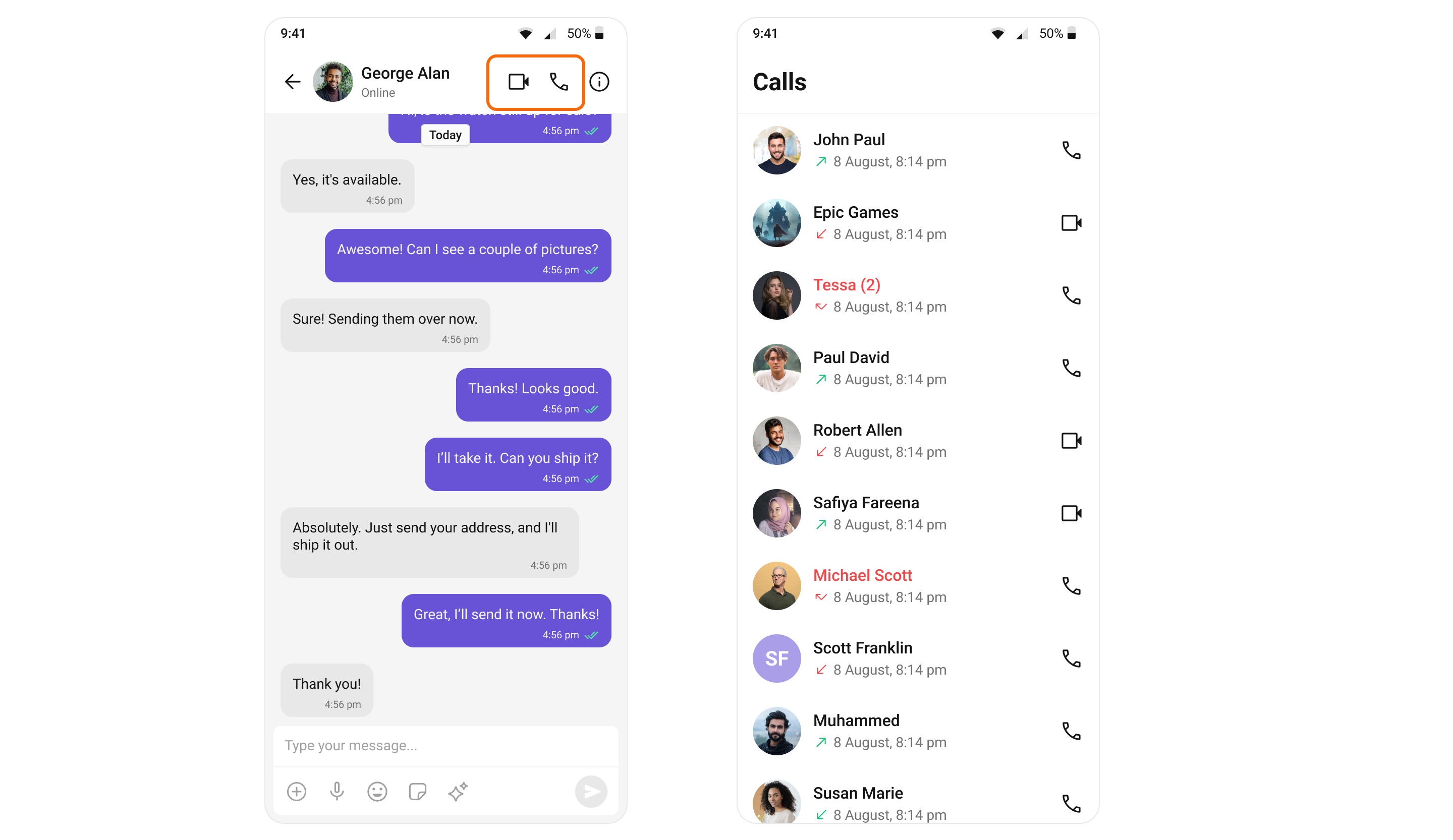 After adding this dependency, the Flutter UI Kit will automatically detect it and activate the calling features. Now, your application supports both audio and video calling. You will see CallButtons widget rendered in MessageHeader Widget.